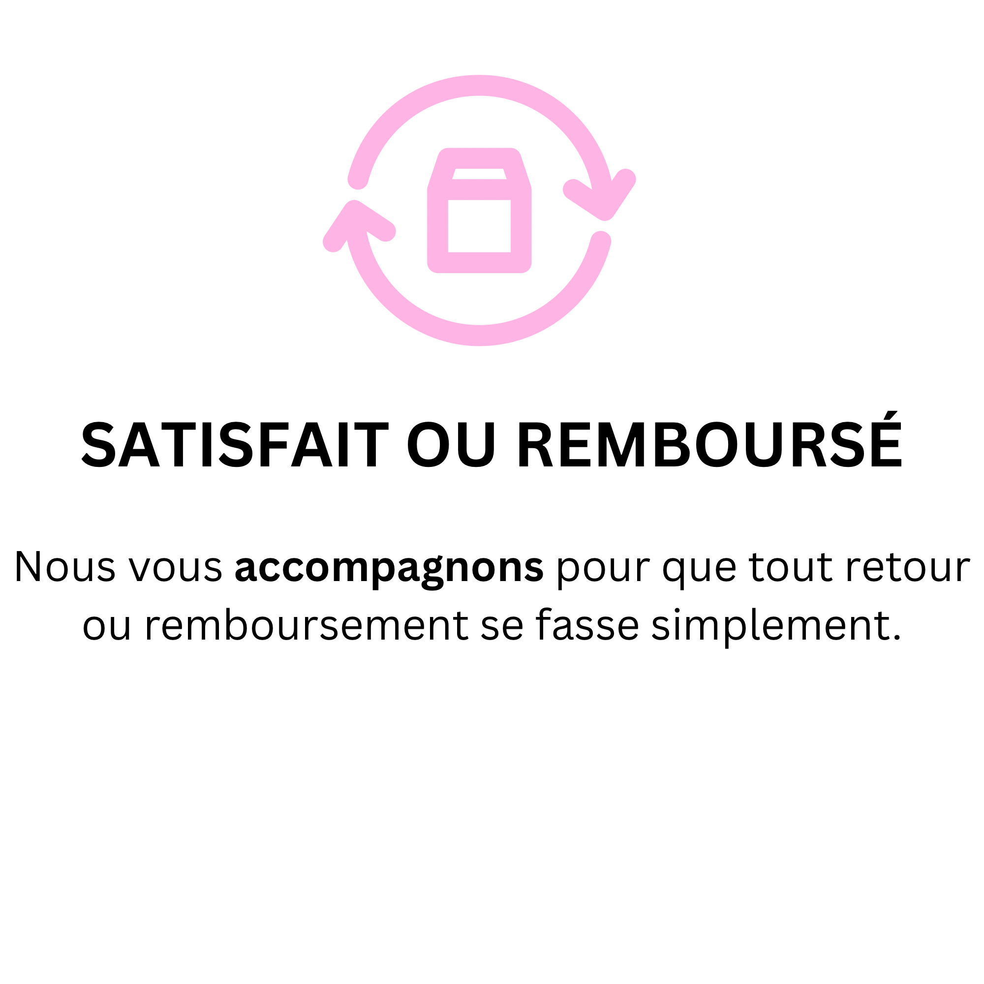 Nous vous recommandons d’effectuer votre retour avec un numéro de suivi et de conserver votre preuve de dépôt. Nous ne pourrons pas être tenus responsables en cas de perte, vol ou détérioration du colis retourné durant le transport.
